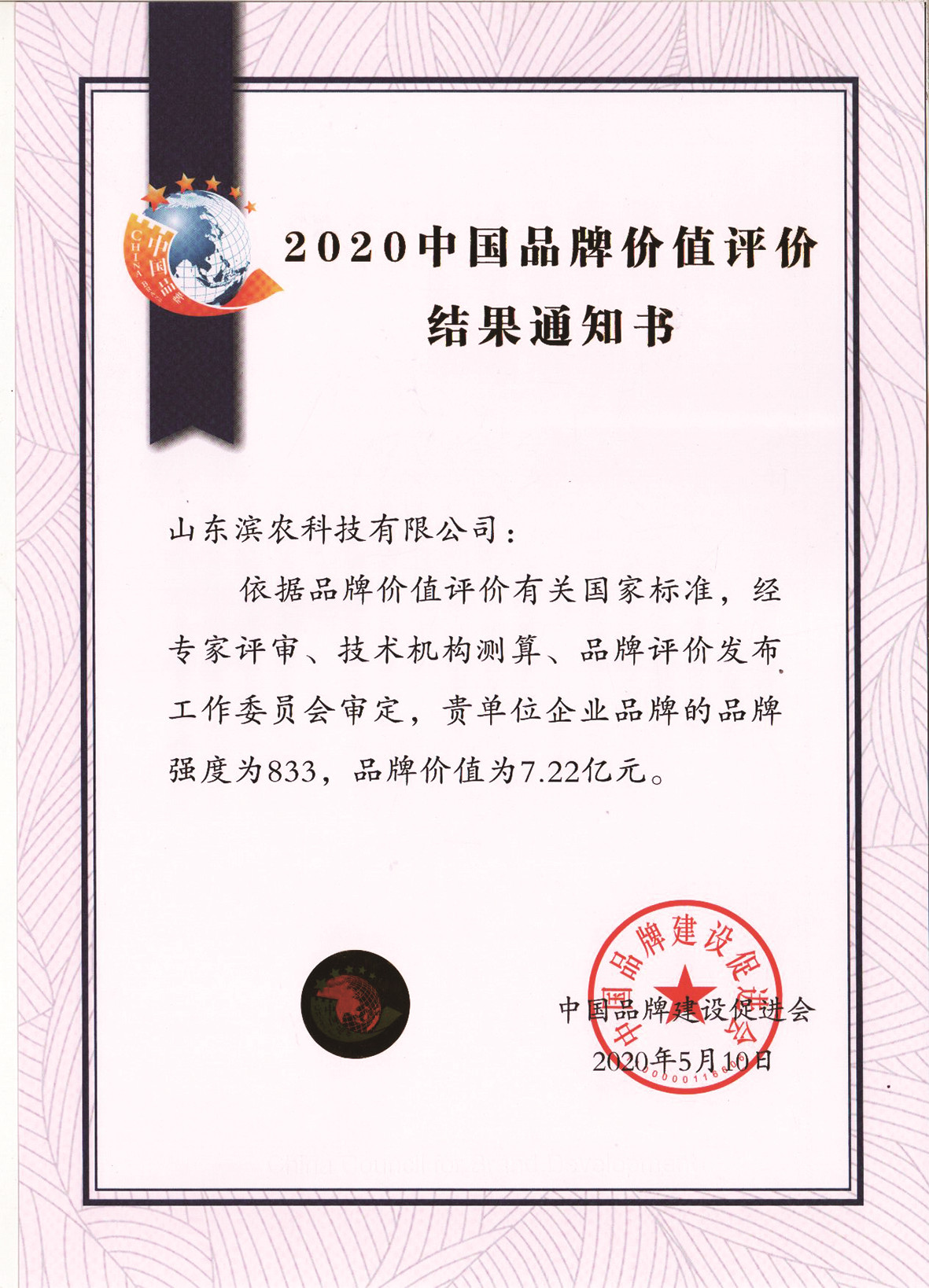 ■2020-05-10 我公司企業(yè)品牌的品牌強(qiáng)度為833,品牌價值為7.22億元