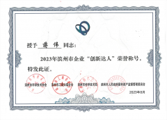 ■2023-10-09 我公司蔣偉榮獲2023年 濱州市企業(yè)“創(chuàng)新達(dá)人”榮譽(yù)稱(chēng)號(hào)