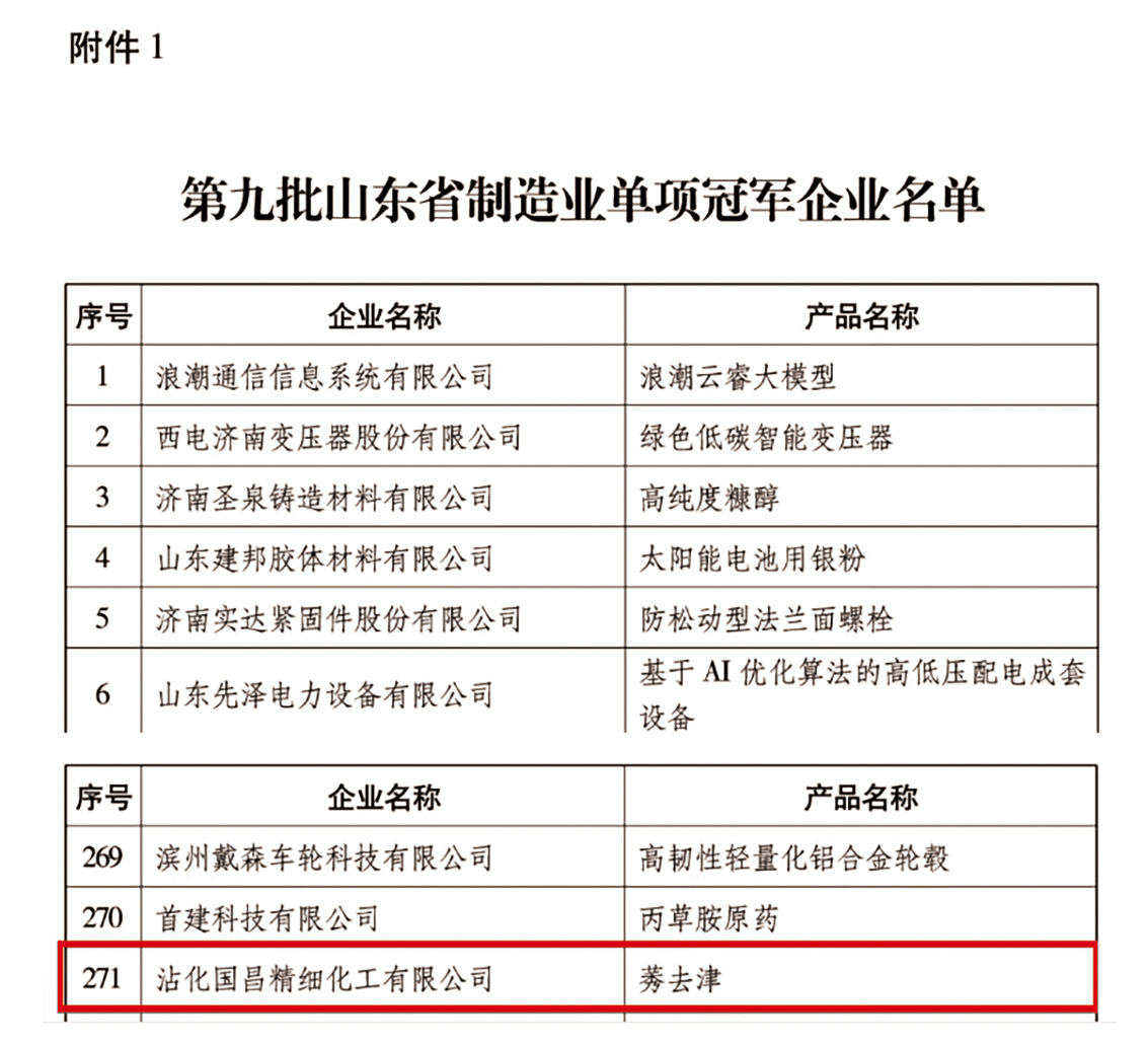 12月19日,濱州市人民政府公布了2025年度濱州市科技創新成果名單,我公司項目《綠色農藥二甲戊靈乳油及其智能化連續生產線的設計與開發》榮獲二等獎。該項目通過篩選出特殊高分子聚醚助劑為增效劑以及高效乳化劑,制得產品長期穩定可靠,降低了能耗與污染,并集成智能生產線實現自動化生產,成為綠 色農藥與智能制造融合的典范,對于推動我國實現綠色生態農業的目標發揮了積極推動作用。