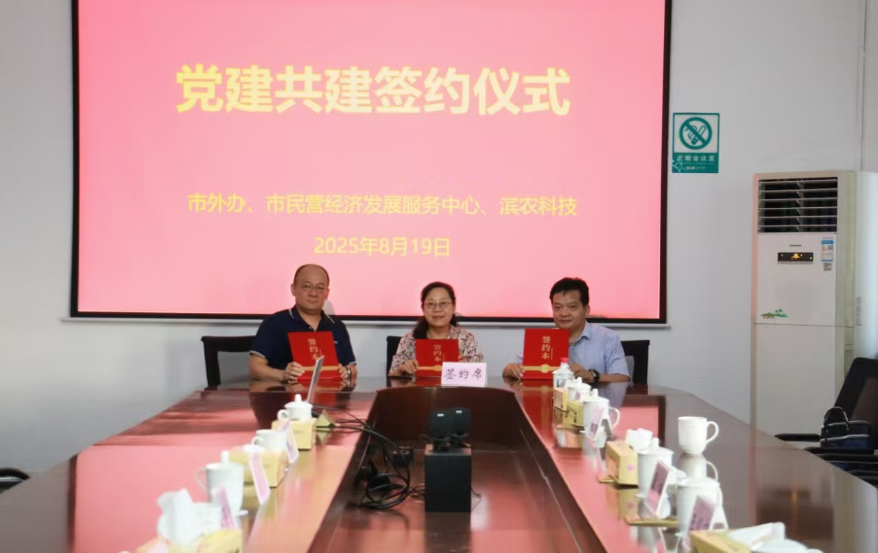 8月19日,濱州市外辦、市民營中心與濱農科技聯合開展“黨建共建助企創世界,同心同向為企鑄心安”惠企服務活動,并舉行黨建共建簽約儀式。市外辦黨組書記、主任裴梅,市民營經濟發展服務中心黨組副書記、副主任王義中,市外辦、市民營中心黨員干部代表出席;我公司董事長李華及國際事業部、人力資源部、事業服務部相關負責人熱情接待。