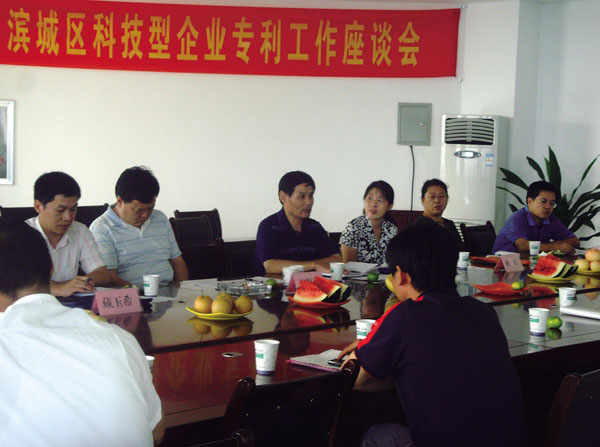 2009年8月27日下午,由濱城區科技局、濱州市專利局聯合主辦的濱州市科技型企業專利座談會在我銷售公司三樓會議室召開。會議由濱城區科技局局長孫明亮主持,濱州市知識產權局副局長崔金光做總結。來自濱州市的18家科技型企業和貿易公司的代表參加了此次會議。我公司科研所所長徐家俊針對高科技專利產品在市場上的巨大優勢做了詳細論述。