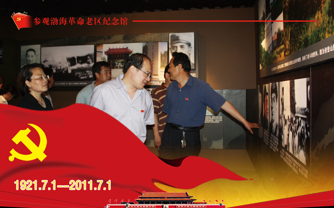 一次參觀是指參觀渤海革命老區紀念館。6月17日下午,黨團徽授牌結束后,在黨支部書記、副總經理李華帶領下,一行46人前往渤海革命老區紀念館參觀。李總一行在紀念館講解員的陪同下,瞻仰了中國共產黨創建、渤海革命區抗日戰爭、解放戰爭時期的重大活動、戰役的雕刻遺跡及烈士陵園墓,并在人民英雄紀念牌前獻花悼念。通過參觀,大家重溫歷史上血與火的斗爭、生與死的考驗的感人事跡,深深感受到和平與發展的來之不易。